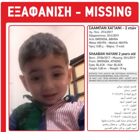 Το βράδυ της Τρίτης (30/4) και συγκεκριμένα στις 22:00, εξαφανίστηκε από το σπίτι του στην Ομόνοια, ο Σααμπάν Χαγιάνι, 2 ετών, συριακής καταγωγής.
